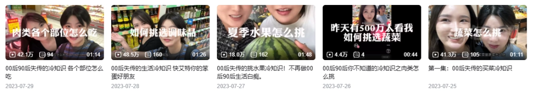 一样是2023年,UP主“机智朱马马”的“教00后90后如何生活”系列视频,也把好多学校里没教过、将近成为失传知识的内容,拍摄成了近百期的短视频——从买菜挑菜到作念菜,皆备是学校里不教但生活中确乎会用到的东西。