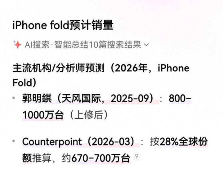 瞻望销量800万-1000万台,iPhone Fold还没推出,可是嗅觉全宇宙皆在期待,而况将是一款远超华为级别的折叠手机,