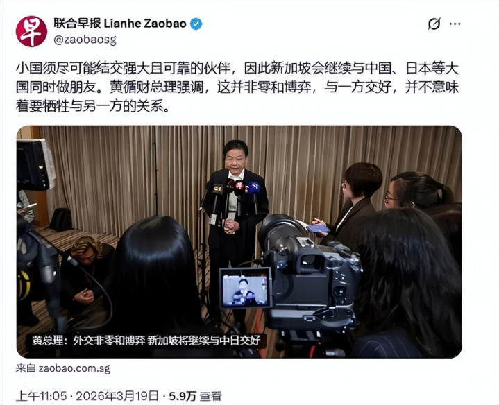 斡旋早报2026年3月19日 黄总理,应酬非零和博弈 新加坡将持续与中日交好
