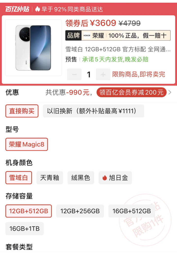 不难发现,就荣耀Magic 8不是那种只会在参数表上“秀肌肉”的手机,而是把性能、屏幕、护眼、影像、续航、注重、通讯、AI体验一皆打磨到位的旗舰,它能陪你打游戏到夜深、也能在路径中帮你拍下远处的格式,能在暴雨里替你撑住风险、也能在信号微弱时替你保捏关连,要是你正在寻找一款信得过“万能型”的旗舰机,就荣耀这款旗舰真就很值得动手OD体育,要知说念,就在价钱层面所出现的下调幅度亦然很大的,参考到如今电商平台中的售价情况,仅是需要3609元即可动手512GB的内存规格了。