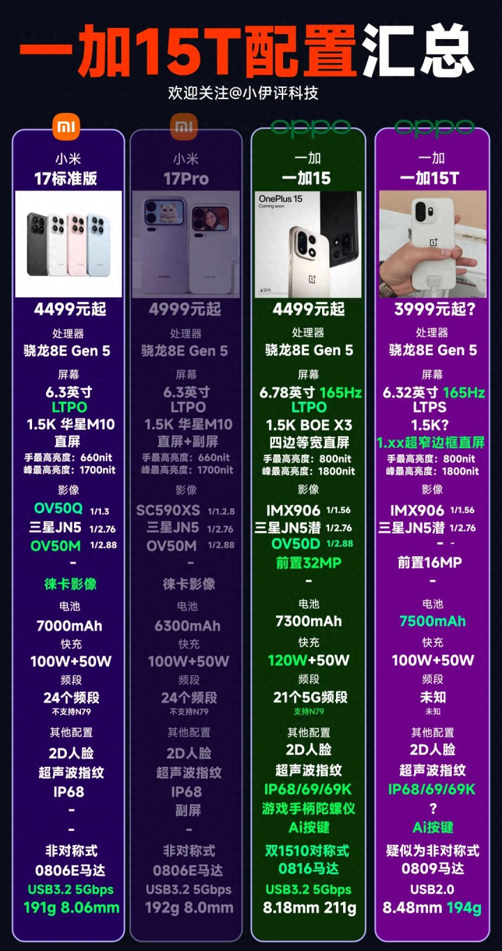 搭载骁龙8 Elite Gen 5的小屏机其实未几,当今来看唯独四款:小米17、小米17Pro、三星S26以及本文的主角一加15T。