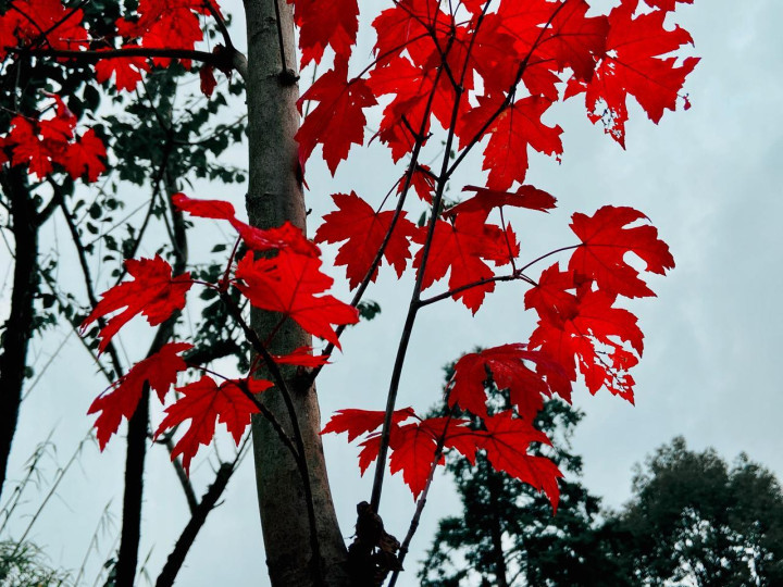 到了秋天,树木原来该是收到信号,准备“关机”过冬,开动判辨叶绿素,让藏不才面的黄色、红色色素显现来。