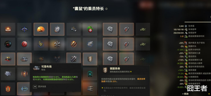 而与此同期,肌肉车还不错让驾驶员学习战地解救+铜筋铁骨两个生人段,前可普及履带修理速率,后可扛伤获取遵循加成;还有重作念的可靠布局手段,叠满后可获取近20%的HE溅射和吊挂挫伤减免,从而强化本人生计时代。