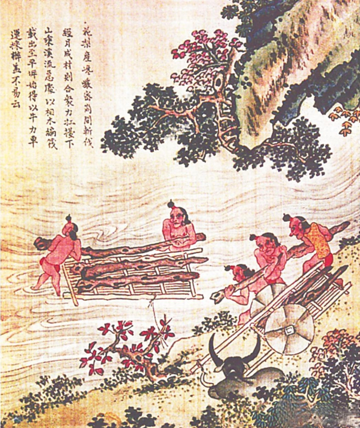 中国国度博物馆 《琼州海黎图》中运木场景