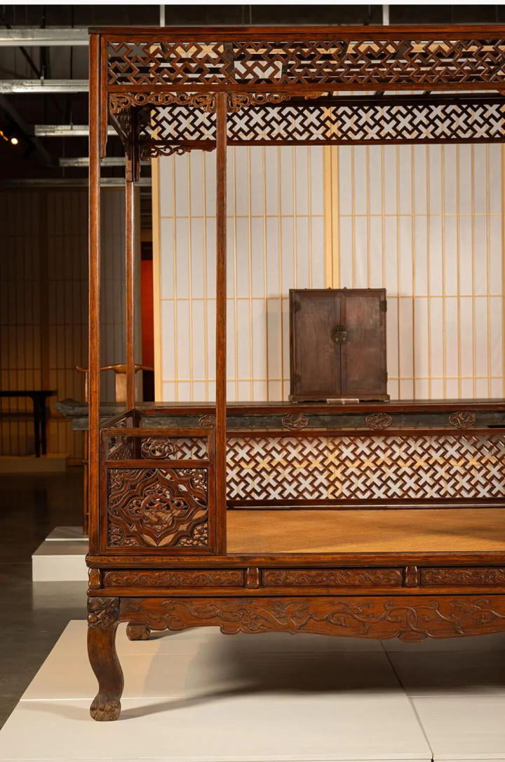 早晨期 黄花梨攒接万字纹六柱架子床