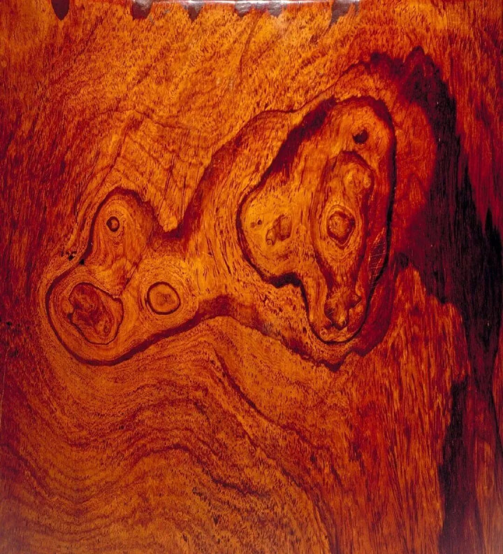 野生黄花梨孕育在艰巨的火山岩山坡上,为了生计不得不迟缓地积存油脂、压缩纤维,从而造成细腻坚贞的芯材,海南岛时局多变,树木枝干一次次撅断,孕育,才略长出着实漂亮的鬼眼。